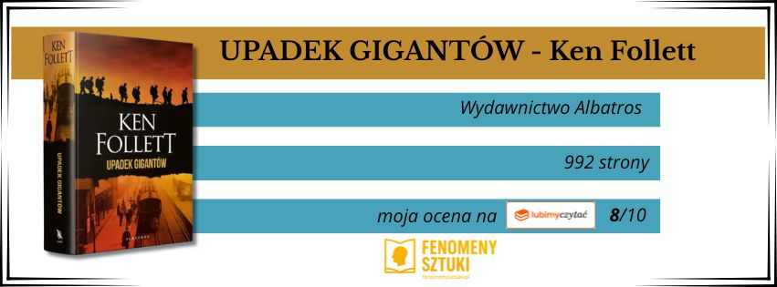Podsumowując, Upadek gigantów to powieść o imponującym rozmachu i wielkiej literackiej sile wyrazu. Ken Follett stworzył dzieło, które – mimo beletrystycznego charakteru – spełnia wiele kryteriów literatury historycznej najwyższej próby. To powieść panoramiczna w pełnym tego słowa znaczeniu, łącząca losy jednostek z dramatem epoki, z odwagą demaskująca iluzje władzy, ideologii i postępu. To także elegia dla świata, który przeminął – i zapowiedź nowego, nie mniej dramatycznego stulecia.